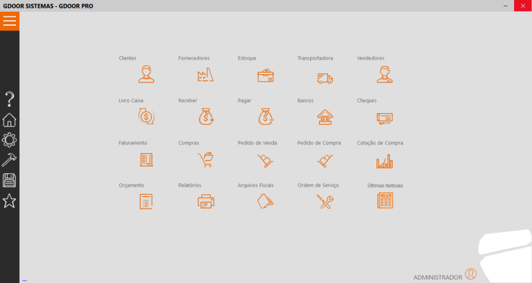 Solução GDOOR totalmente ON-LINE, possui cadastro de produtos, clientes, fornecedores, transportadores, relatórios, pedido de venda, emissão de NFP-e, NF-e e NFC-e ilimitadas.
